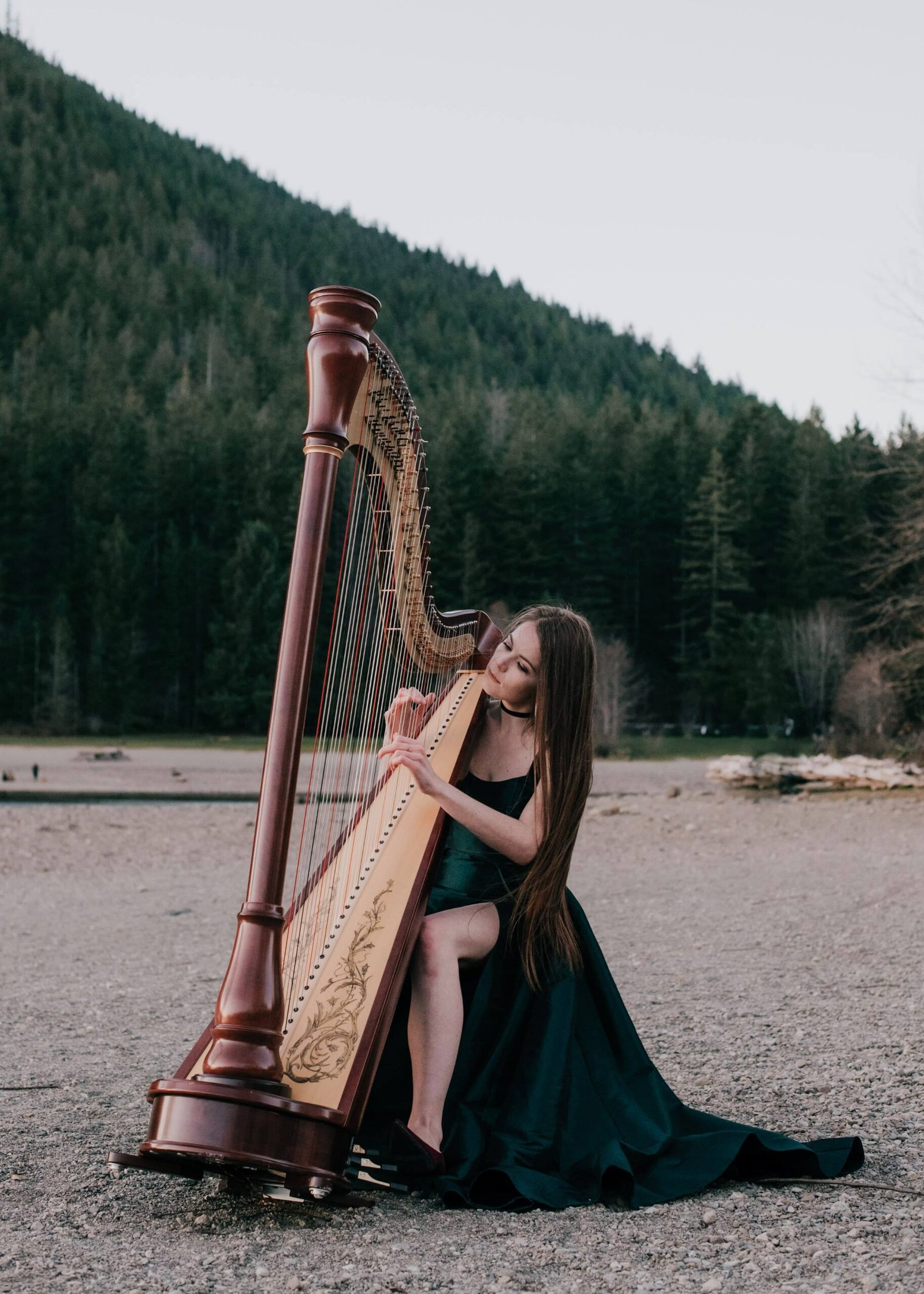 Alyvia and her harp cannot be exposed to direct sunlight, as this can result in the digital sheet music tablet overheating and abruptly shutting off mid-performance. For all outdoor events, clients must provide shade cover of some sort. Performances cannot take place outdoors in the case of forecasts predicting rain or temperatures below 55º F.